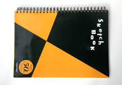 | 画用紙 ごく普通のスケッチブックで充分です。画用紙にも粗めからツルツルしている細目までいろいろありますが、私は細目を使っています。絵の具が美しくのるからです。 |